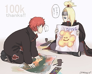 Deidara překvapeně zamrkal. Sasori byl chladný jako obvykle, ale v očích měl velice zvláštní výraz. Našli si opuštěné místo a teprve zde vytáhl ninja svůj úlovek – malířskou paletu a několik srolovaných pláten.