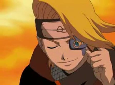 Blonďatý modrooký ninja s vlasy, co mu padaly do obličeje, se upřímně podivil. Ona osoba ho ještě nemohla spatřit, zato on ji viděl dobře. „Parádní maskování! Nebýt těch očí, nepoznal bych tě, Itachi!“ zahlaholil. Postava teď zírala přímo na něj.